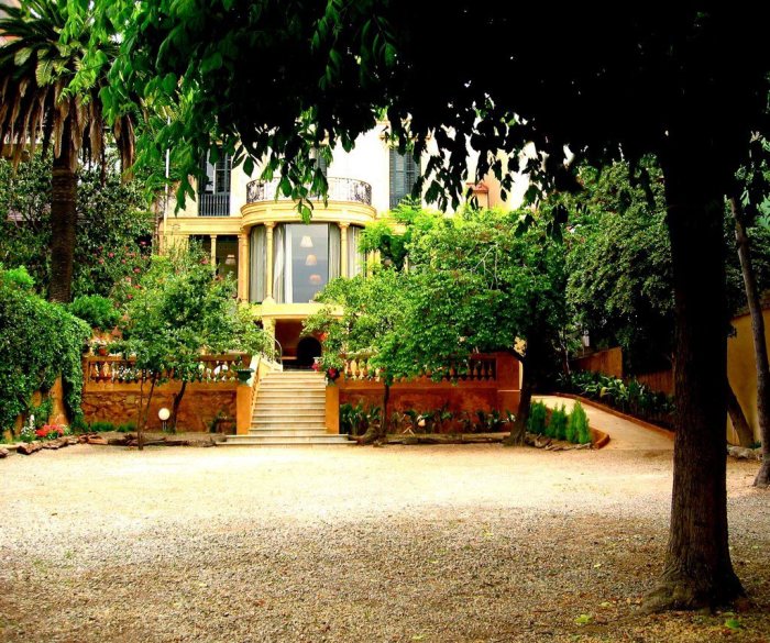 *17:45 h Llegamos. Somos los primeros. Me quedo con los intrumentos mientras M & L buscan aparcamiento. Una chica «que no es de allí» me abre las puertas del palacio-jardín y va a buscar a Mr Amat. Alto, fuerte, pelo largo, guaperas. Como yo, más o menos.